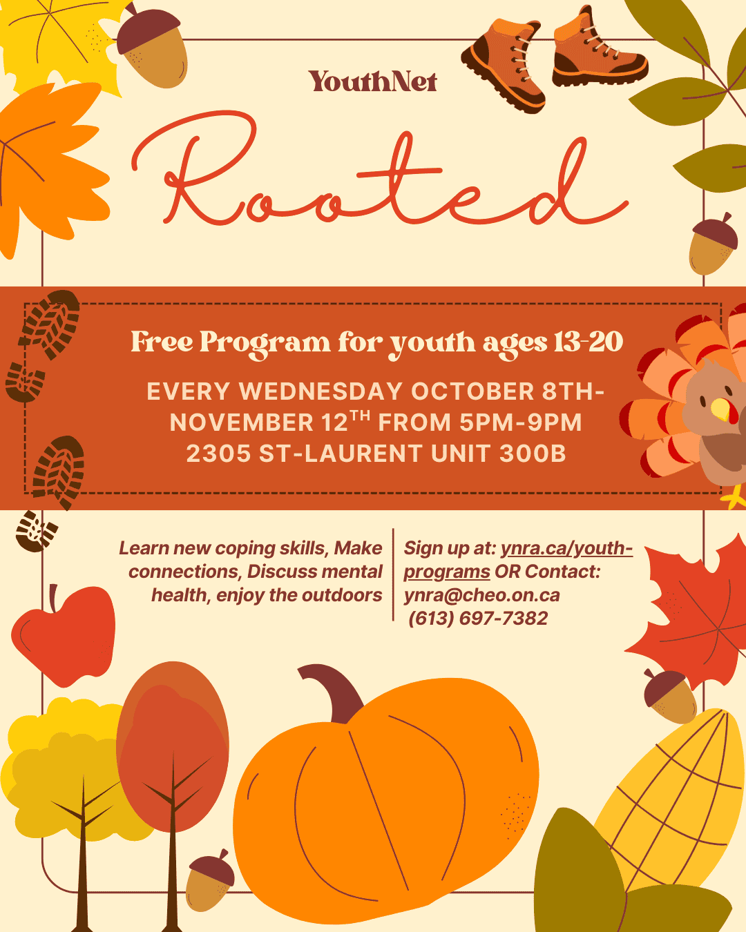 This program, which typically takes place in the summer (sometimes spring and fall), is an opportunity for you to spend time outdoors, exploring nature and trying out new activities. You’ll have a chance to experience how nature can be used as a great coping tool and discuss other nature-based stress-reduction strategies with other youth! You might get an opportunity to try ziplining, hiking, swimming, kayaking, visiting a farm and much more! All costs for the activities are covered by YouthNet.